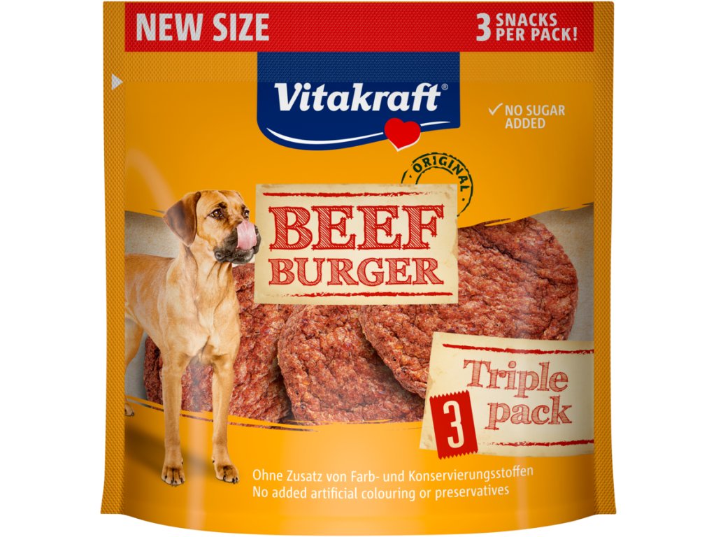 Masité placičky mají nejen lákavou vůni, ale také neodolatelnou chuť. Ať už chcete svého parťáka motivovat nebo mu jen zpestřit jídelníček, Beef Burger je tou pravou volbou.