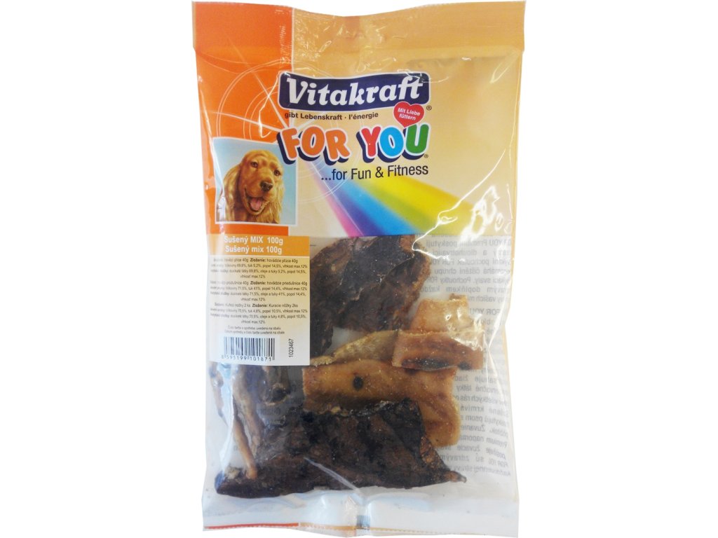 100% přírodní sušený mix. Slouží jako doplňek stravy pro psy.