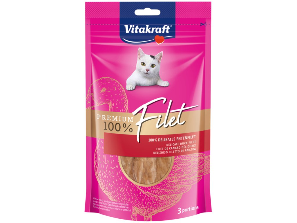 Chuťový požitek plný masa - Vaše kočka si tento snack zamiluje! 100% čisté nízkotučné kuřecí filety, zcela bez obilovin, barviv a umělých ochucovadel budou hýčkat chuťové buňky Vašeho mazlíčka, a to zdravou, přírodní cestou. Filety jsou připravovány procesem šetrného vaření a jsou tak nádherně šťavnaté a jemné. Snacky Vitakraft Premium Filets neobsahují obilniny a jako zdroj bílkovin slouží pouze kuřecí maso, jsou tudíž vhodné i pro nutričně citlivé jedince! Snacky jsou baleny jednotlivě pro zachování čerstvosti, vůně a chuti. Voňavý snack, kterému žádný kočičí jazýček neodolá! Vitakraft Premium Filet v krátkém přehledu: Snack pro kočky - jako malá svačinka nebo chutná odměna 100% kuřecí filety Bez obilovin, hypoalergenní: ideální pro nutričně citlivé kočky Šetrně vařené: filety zůstanou šťavnaté a jemné Bez umělých ochucovadel a barviv Praktické a jednotlivě balené pro ochranu vůně a chuti
