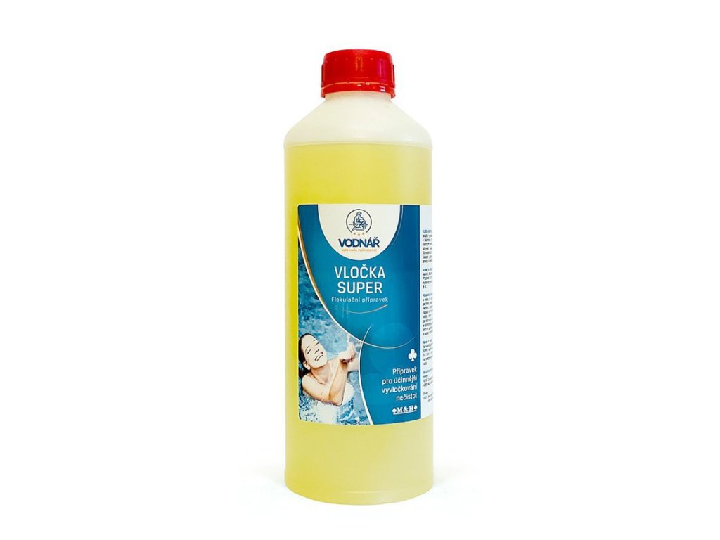 Vločka super je kapalný flokulační přípravek, který slouží k vyvločkování nečistot a udržení čiré vody v bazénech. Je vysoce účinný, lépe filtruje vločky, stabilizuje vodu a pH vody, tím dochází ke snížení spotřeby přípravků na úpravu vody.