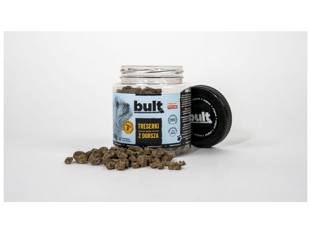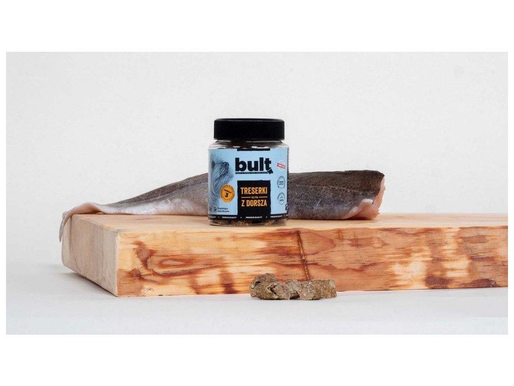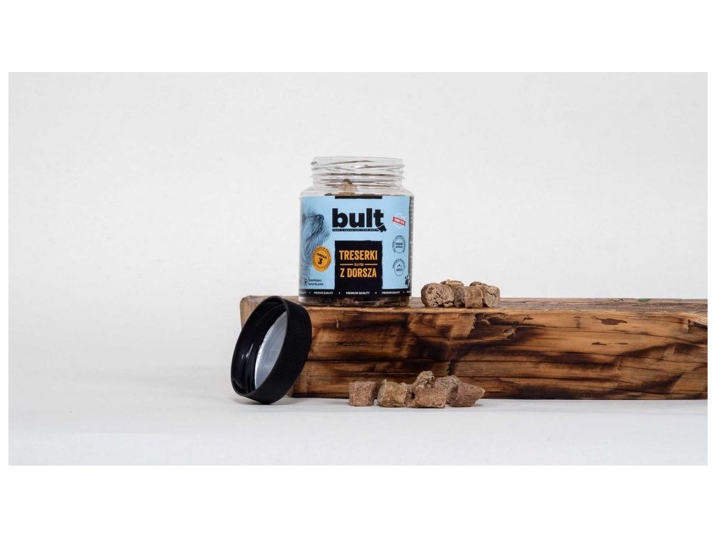 Výcvikové pamlsky Bult jsou ručně vyráběné. Sušíme je tak, abychom použití chemických konzervantů omezili na nulu. Každý výcvikový pamlsek z tresky, který opouští naše výrobní linky, musí splňovat přísné normy.