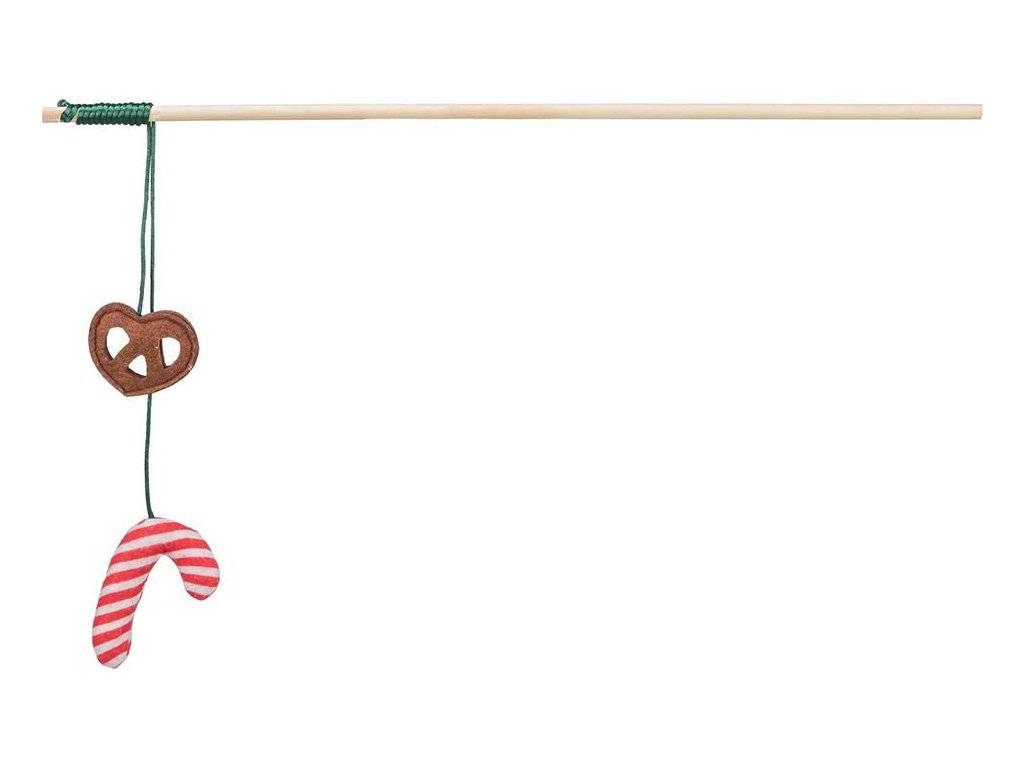 Xmas vánoční prut pro kočky 48 cm, s preclíkem/lízátkem, šustící, dřevo/polyester