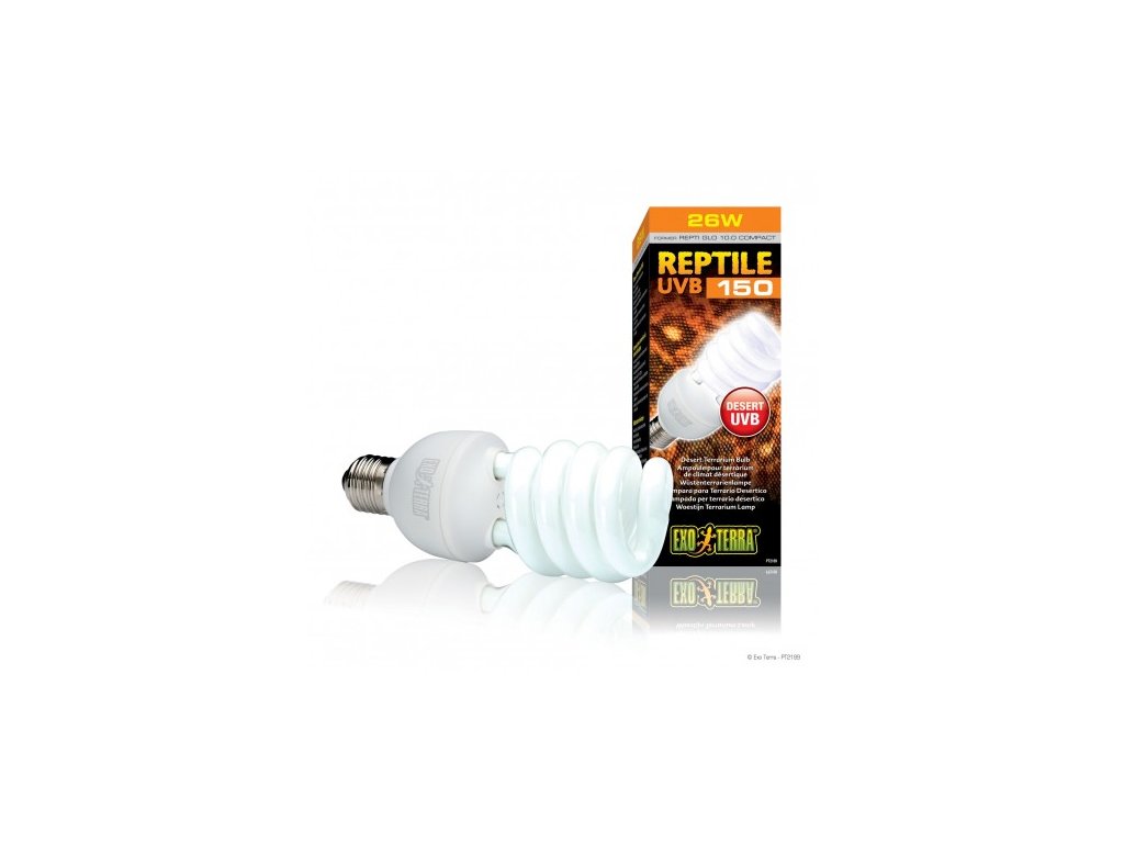 Kompaktní zářivka Reptile UVB 150 25 W slouží jako zdroj UV-A a UV-B záření pro terarijní zvířata. Vyzařuje cca 30 % UV-A a 10 % UV-B. Díky relativně nízké wattáži a malé velikosti je vhodná pro menší a střední terária, pro tropická, polopouštní a pouštní zvířata. Tato zářivka je použitelná pro všechny plazy s vyšší potřebou UVB záření - t.j. chameleony, ještěry, stromové hady, agamy, suchozemské i vodní želvy atd... Jednoduchá instalace rovnou do klasické objímky E27. Po zašroubování z objímky kouká jen 12 cm dlouhá část zářivky. Instaluje se přímo nad zvířata do vzdálenosti 5 - 30 cm od zvířat. Se zvyšující se vzdáleností vyzařování UV rychle klesá. Údaje uváděné výrobcem o dosahu záření až do 50-ti cm vzdálenosti nebyly měřením potvrzeny! Vyzařování UV záření maximálně 1 rok. Důležitá upozornění: instalujte dovnitř terária - UV-B paprsky skrz sklo nebo plexisklo neprojdou! Kompaktní zářivka nevydává moc tepla, proto je zdroj tepla nutné do terária dodat zvlášť. Staré kompaktní zářivky v žádném případě nevyhazujte do běžného komunálního odpadu, vyžadují ekologickou likvidaci! Odevzdejte je do sběrného dvora nebo v prodejnách, kde zářivky prodávají.