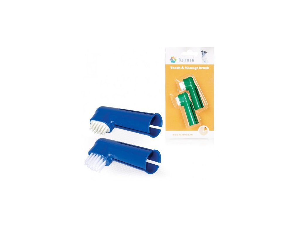 Zubní kartáček na prst pro psy a kočky- pravidelná péče zabraňuje krvácení dásní- 2 v 1 = čistící + masážní kartáček v 1 balení- brání tvorbě zubního kamene- chrání účinně ústní dutinu Vašeho psa i kočkyNávod k použití: kartáček nasaďte na prst a krouživými pohyby odstraňte zubní plak z chrupu Vašeho psa či kočkyObsah balení: 1 ks čistícího kartáčku, 1 ks masážního kartáčku